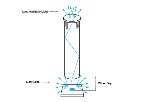 Light leaks occur when some of the light that is meant to be transmitted to the exit point escapes at other places in the device, reducing efficiency and causing false readings.