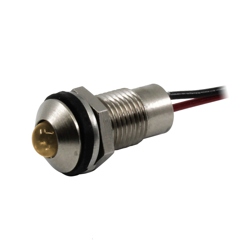 LED Panel Mount Indicator Amber .319″ Long Body 48V Wire Leads IP67