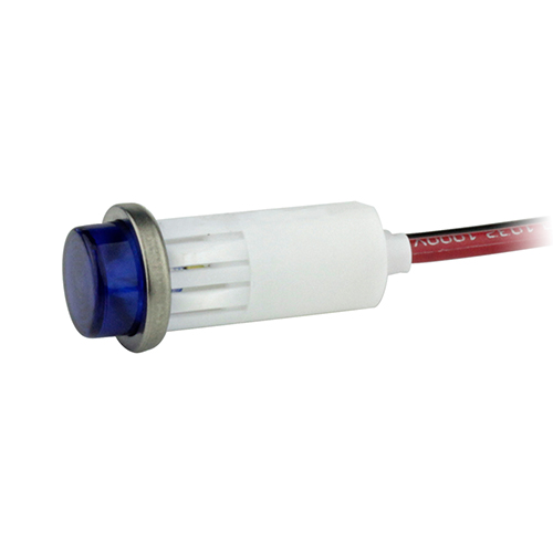 LED Panel Mount Indicator Blue .500″ Hi-Hat 28V Wire Leads
