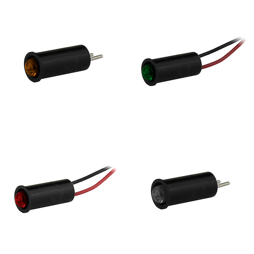 All Products Panel Mount Indicators LED Panel Mount Indicator 90 Series LED Panel Mount Indicator Green .290″ Small Dome 120V Straight Leads