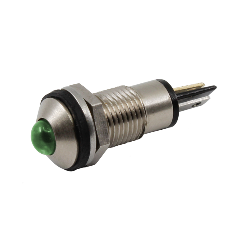 LED Panel Mount Indicator Green .319″ Round 28V Tab Terminals IP67