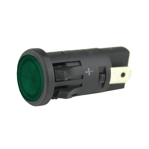 LED Panel Mount Indicator Green .500″ Flat Lens 120VAC Tab Terminal