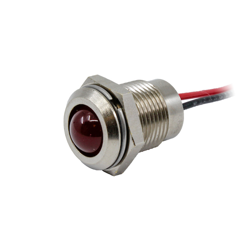 LED Panel Mount Indicator Red .555″ 5V Wire Leads IP67