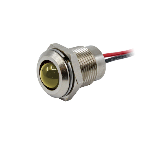 LED Panel Mount Indicator Yellow .555″ 120VAC Wire Leads IP67