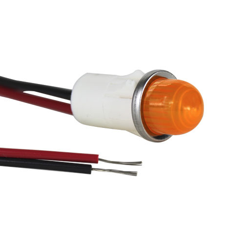 Neon Panel Mount Indicator Amber .500″ Hi-Dome 250V Wire Leads