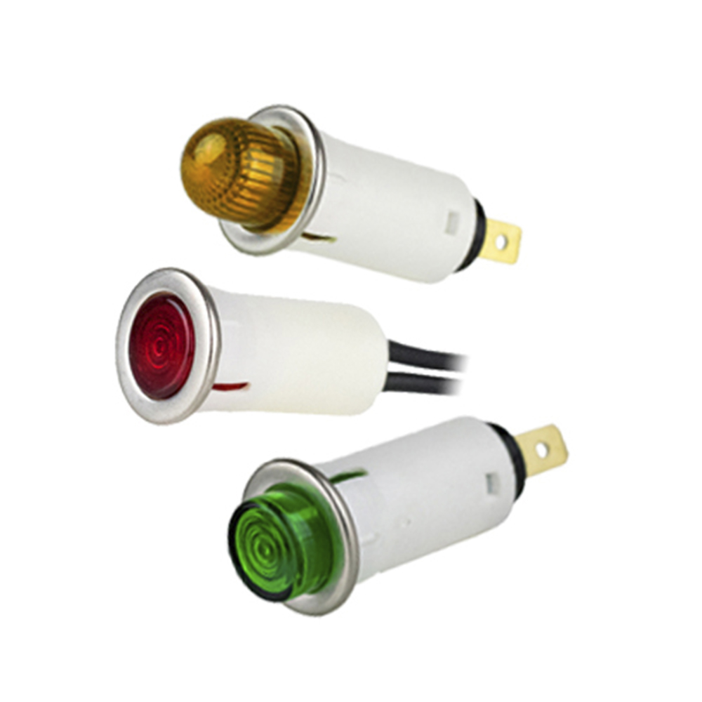 Neon Panel Mount Indicator Amber .500″ Hi-Hat 125V Tab Terminals