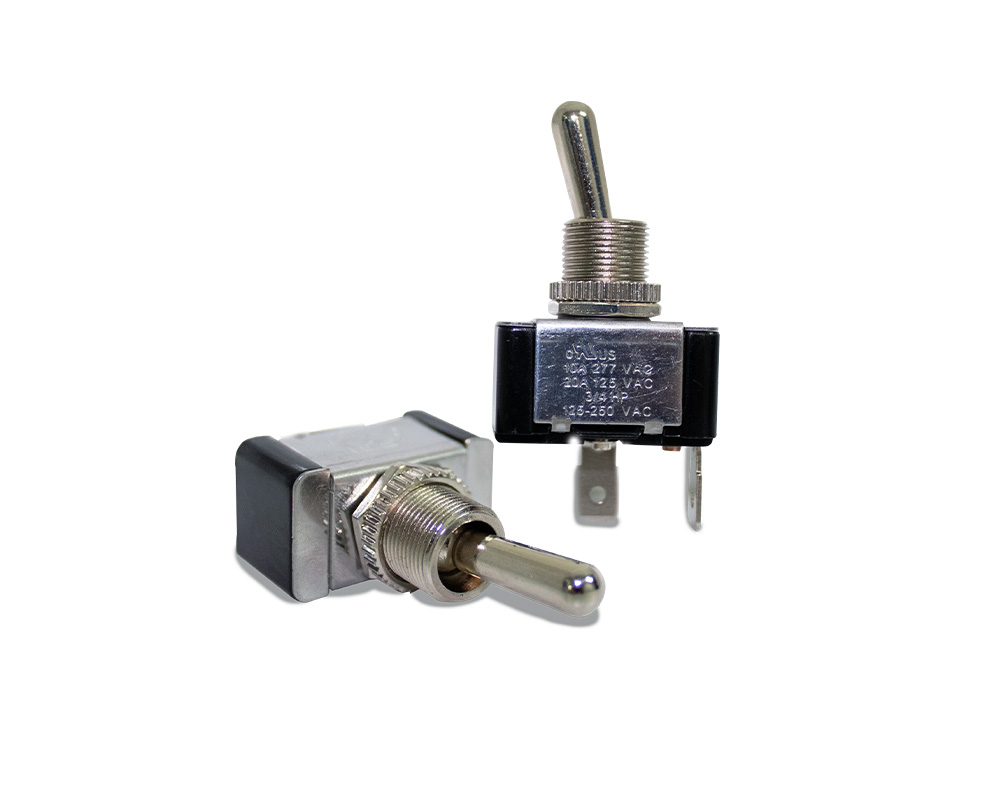 Toggle switch 12.2mm mount hole BAT 16.5mm 2P SPST Off-(On) 20A 125VAC, 10A 277VAC .250″ QC